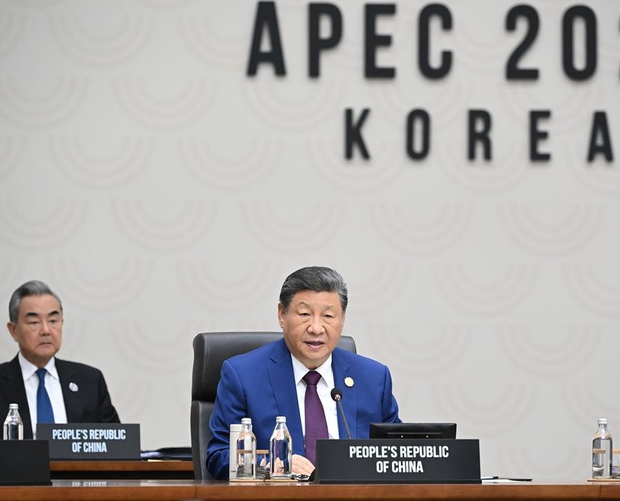 當(dāng)?shù)貢r(shí)間11月1日上午,國(guó)家主席習(xí)近平在韓國(guó)慶州出席亞太經(jīng)合組織第三十二次領(lǐng)導(dǎo)人非正式會(huì)議第二階段會(huì)議,并發(fā)表題為《共同開(kāi)創(chuàng)可持續(xù)的美好明天》的重要講話(huà)。新華社記者 謝環(huán)馳 攝