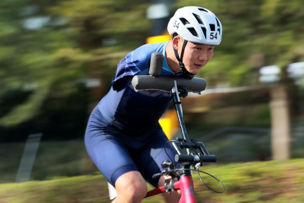 ↑11月27日,新疆隊選手鄧偉在男子PTS2級別自行車比賽中,最終他獲得該級別銅牌。新華社發(fā)(劉春林攝)