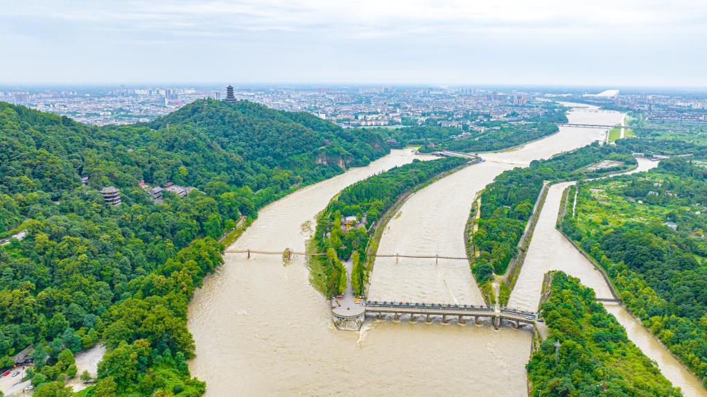 2025年7月拍攝的都江堰水利工程(無人機(jī)照片)。新華社發(fā)(何勃 攝)