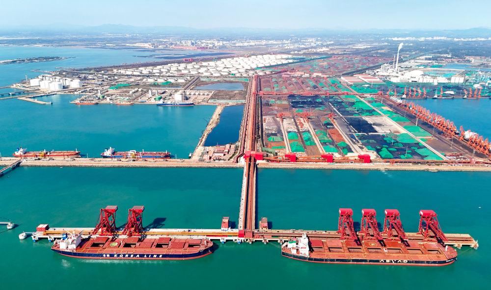 在山東青島拍攝的山東港口青島港第二座40萬噸礦石碼頭(2025年10月27日攝,無人機(jī)照片)。新華社發(fā)(張進(jìn)剛 攝)