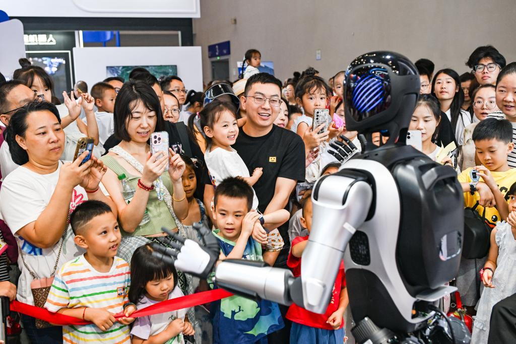 9月7日,觀眾在智博會(huì)上參觀人形機(jī)器人。新華社記者王全超攝