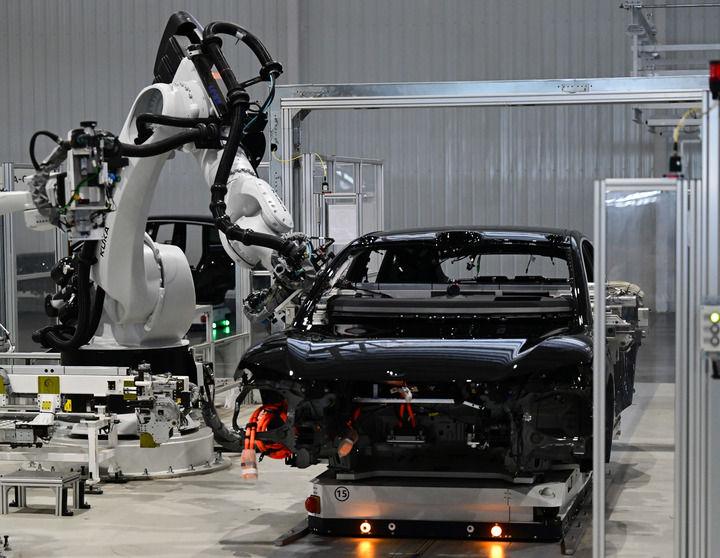 2025年7月1日在合肥市新橋智能電動(dòng)汽車產(chǎn)業(yè)園蔚來(lái)第二工廠拍攝的新能源汽車生產(chǎn)線。新華社記者 周牧 攝