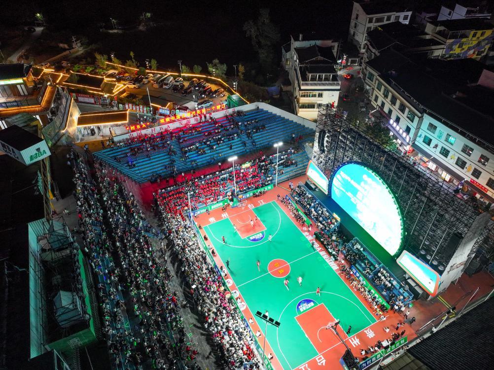 2025年10月12日,全國(guó)和美鄉(xiāng)村籃球大賽(“村BA”)總決賽在貴州省臺(tái)江縣臺(tái)盤村開賽。新華社發(fā)(袁福洪攝)