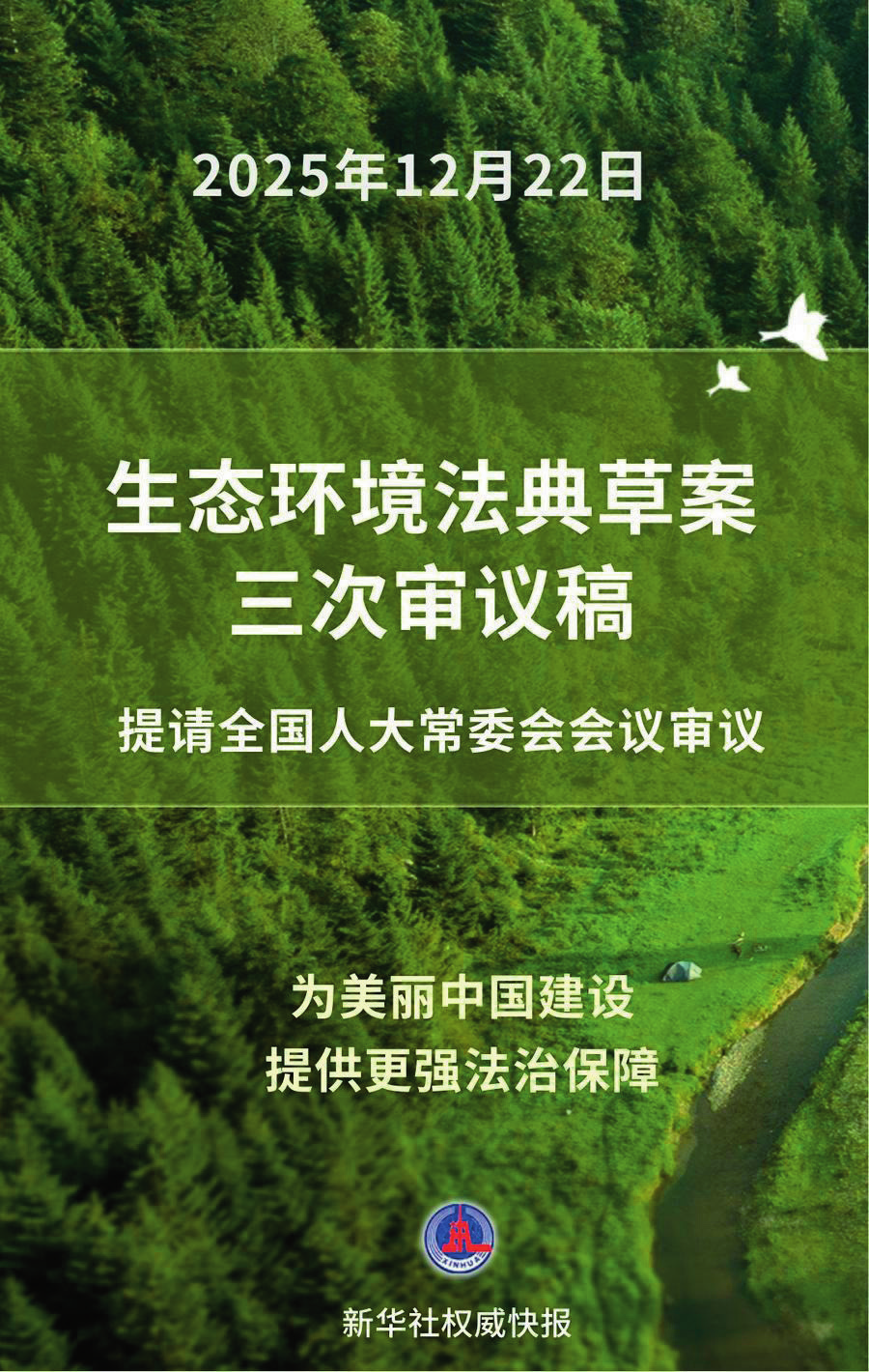2025年12月22日,中國生態(tài)環(huán)境法典草案三次審議稿提請十四屆全國人大常委會(huì)第十九次會(huì)議審議