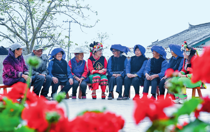 全國人大代表魯麗華(左五)在云南省南澗彝族自治縣無量山鎮(zhèn)新政村幸福小院給彝族老人講解養(yǎng)老政策(2025年3月18日攝) 新華社發(fā)(適志宏攝)