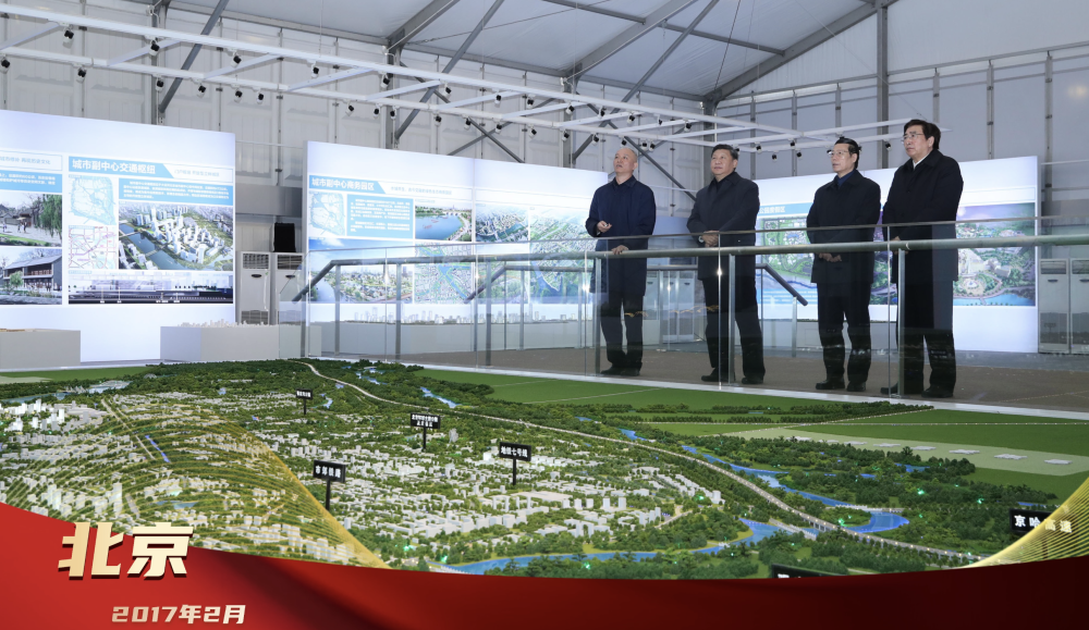 2017年2月24日,習(xí)近平總書記在北京城市副中心行政辦公區(qū)建設(shè)現(xiàn)場指揮部察看規(guī)劃沙盤,了解副中心建設(shè)理念、目標(biāo)定位、文化保護(hù)等情況。創(chuàng)新為要、“瓣瓣同心”,總書記的戰(zhàn)略擘畫,引領(lǐng)京津冀協(xié)同發(fā)展走深走實。