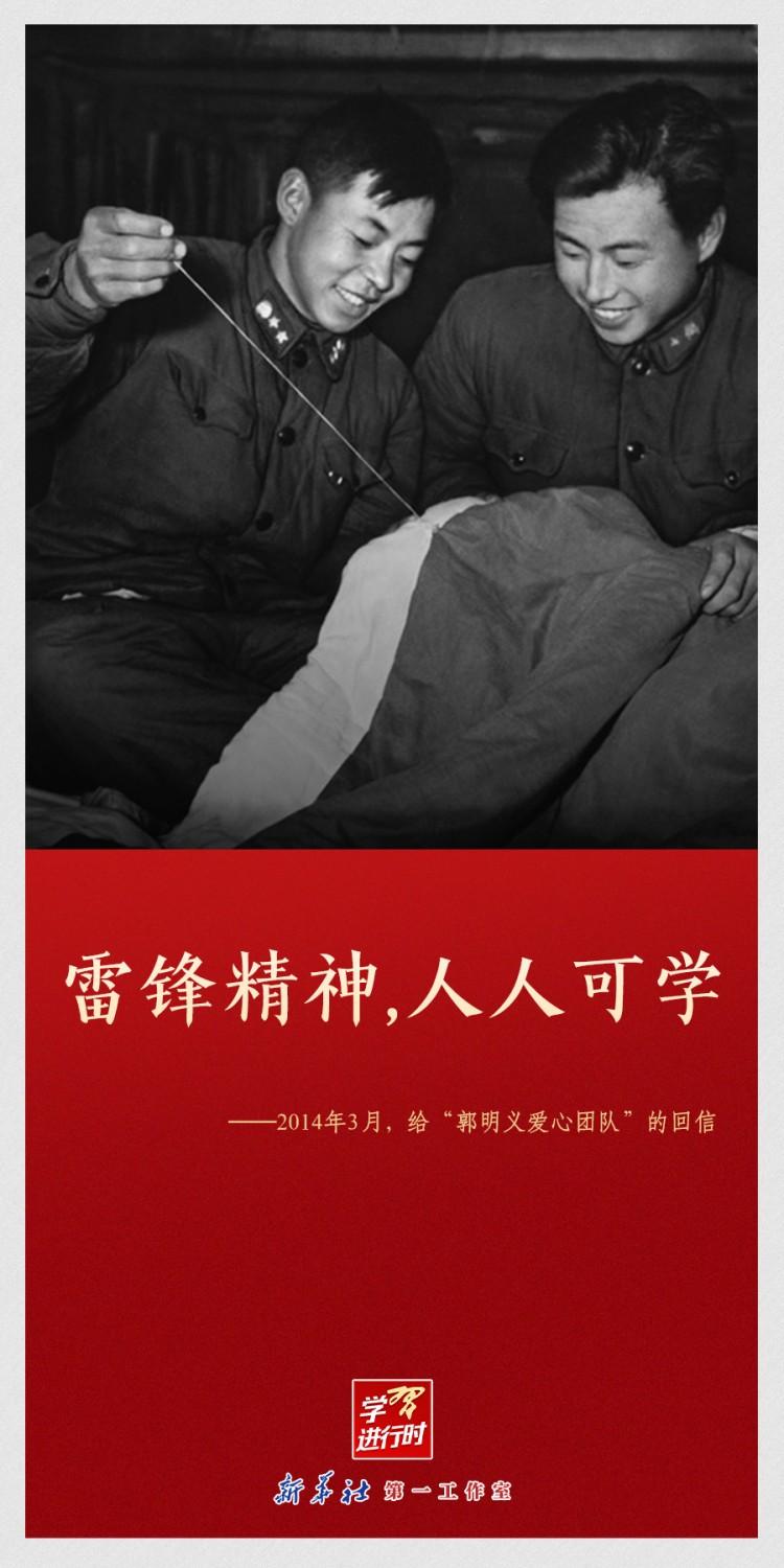 【學(xué)習(xí)進(jìn)行時(shí)】“雷鋒精神永不過(guò)時(shí)”“讓學(xué)雷鋒活動(dòng)融入日常、化作經(jīng)常”“雷鋒精神,人人可學(xué)”……黨的十八大以來(lái),習(xí)近平總書記多次動(dòng)情地談到雷鋒精神。在學(xué)雷鋒紀(jì)念日到來(lái)之際,讓我們一起重溫習(xí)近平總書記關(guān)于雷鋒精神的重要論述。