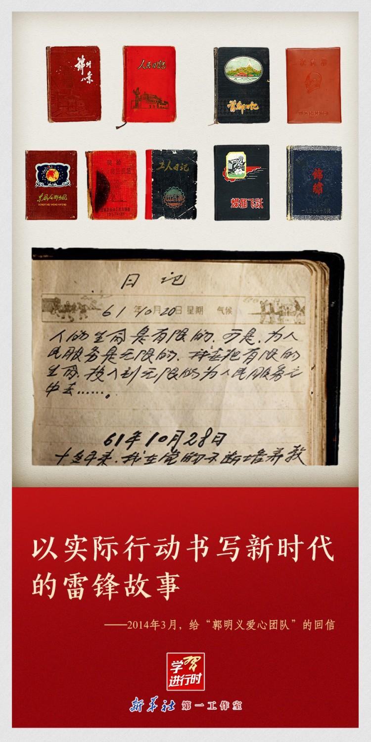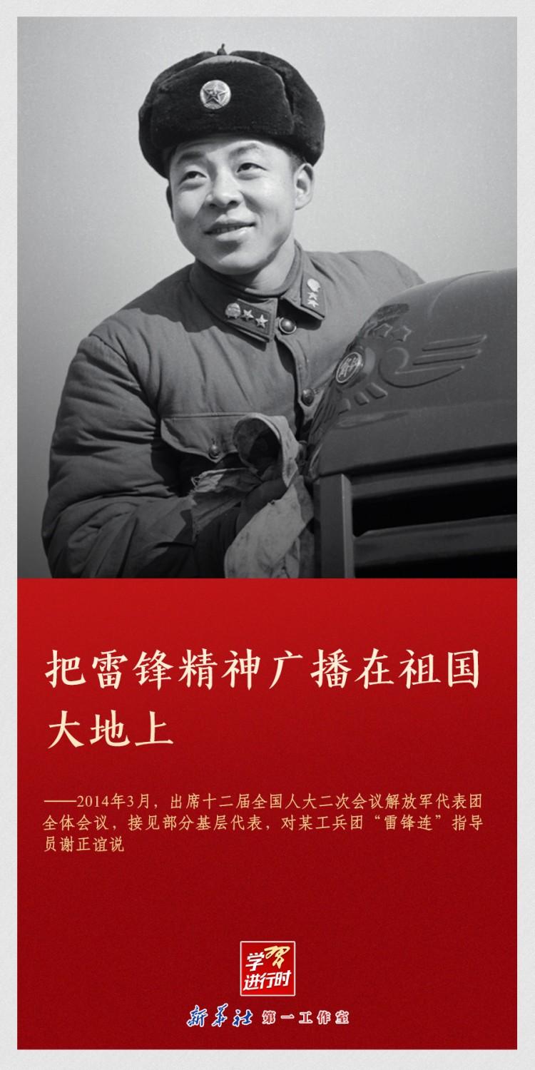 【學(xué)習(xí)進行時】“雷鋒精神永不過時”“讓學(xué)雷鋒活動融入日常、化作經(jīng)常”“雷鋒精神,人人可學(xué)”……黨的十八大以來,習(xí)近平總書記多次動情地談到雷鋒精神。在學(xué)雷鋒紀(jì)念日到來之際,讓我們一起重溫習(xí)近平總書記關(guān)于雷鋒精神的重要論述。