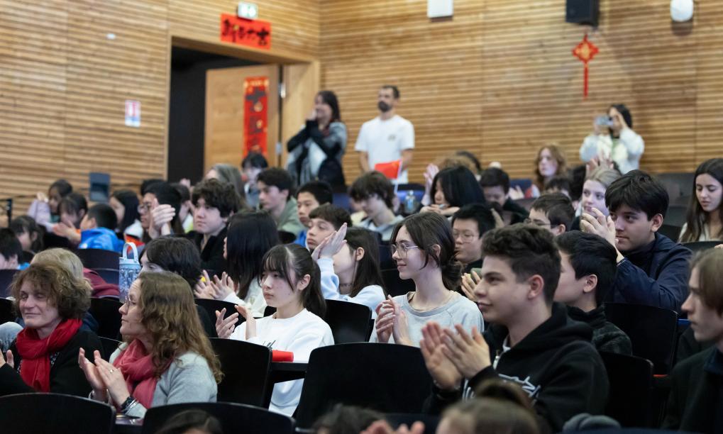 當(dāng)?shù)貢r(shí)間3月12日,普羅旺斯小城馬諾斯克,春日和煦。學(xué)校的階梯教室里,紅燈籠和中國結(jié)高高掛起,中國駐馬賽總領(lǐng)館向?qū)W校轉(zhuǎn)交習(xí)近平主席復(fù)信,現(xiàn)場氣氛熱烈,在座師生們鼓掌、歡呼,臉上洋溢著興奮的笑容。