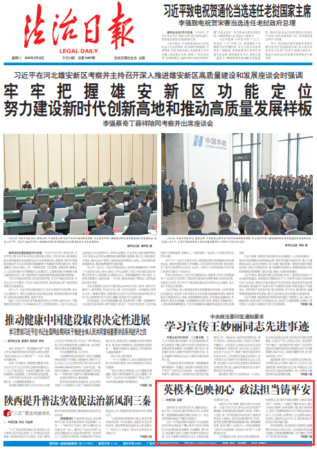 英雄是時(shí)代的標(biāo)桿,榜樣是前行的力量。王妙麗以無畏之勇護(hù)民安,以赤誠之心守初心,以堅(jiān)守之行擔(dān)使命,充分展現(xiàn)了新時(shí)代政法干警忠誠干凈擔(dān)當(dāng)?shù)牧己蔑L(fēng)貌。