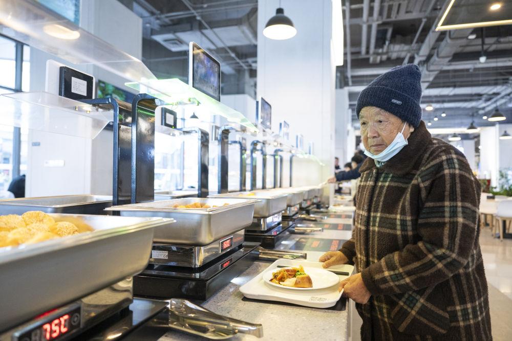 2025年11月25日,老人在雄安新區(qū)啟動(dòng)區(qū)文華社區(qū)華序府智慧食堂內(nèi)取餐。在這座食堂,居民“刷臉”即可完成身份識(shí)別,取餐時(shí)系統(tǒng)自動(dòng)綁定餐盤并實(shí)時(shí)結(jié)算,實(shí)現(xiàn)無(wú)感支付。此外,取餐區(qū)具備智能稱重與熱量測(cè)算功能、健康一體機(jī)可以生成健康報(bào)告并提供飲食建議。