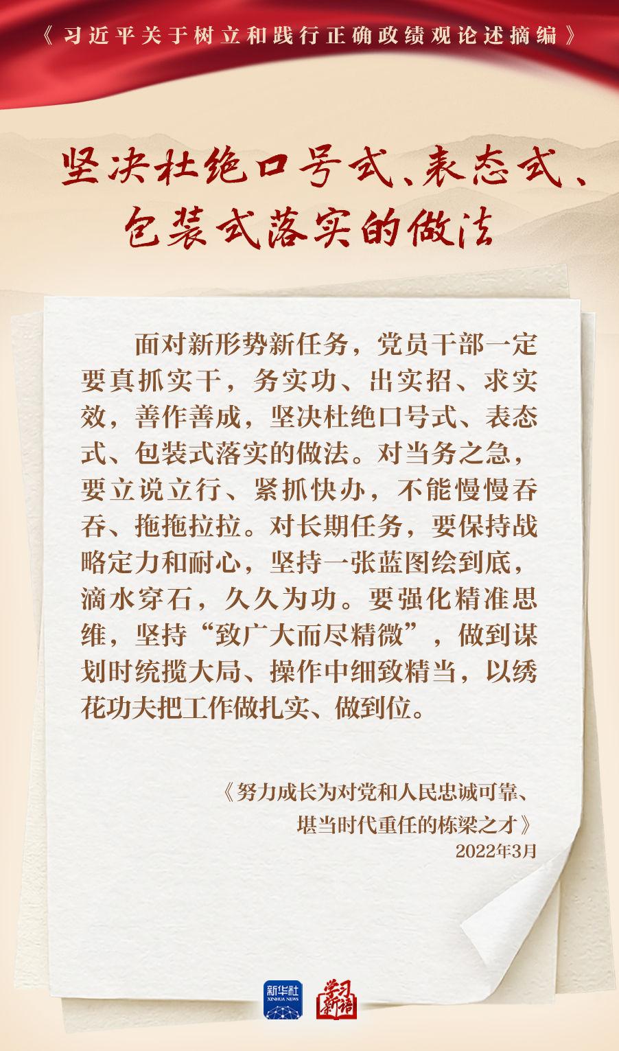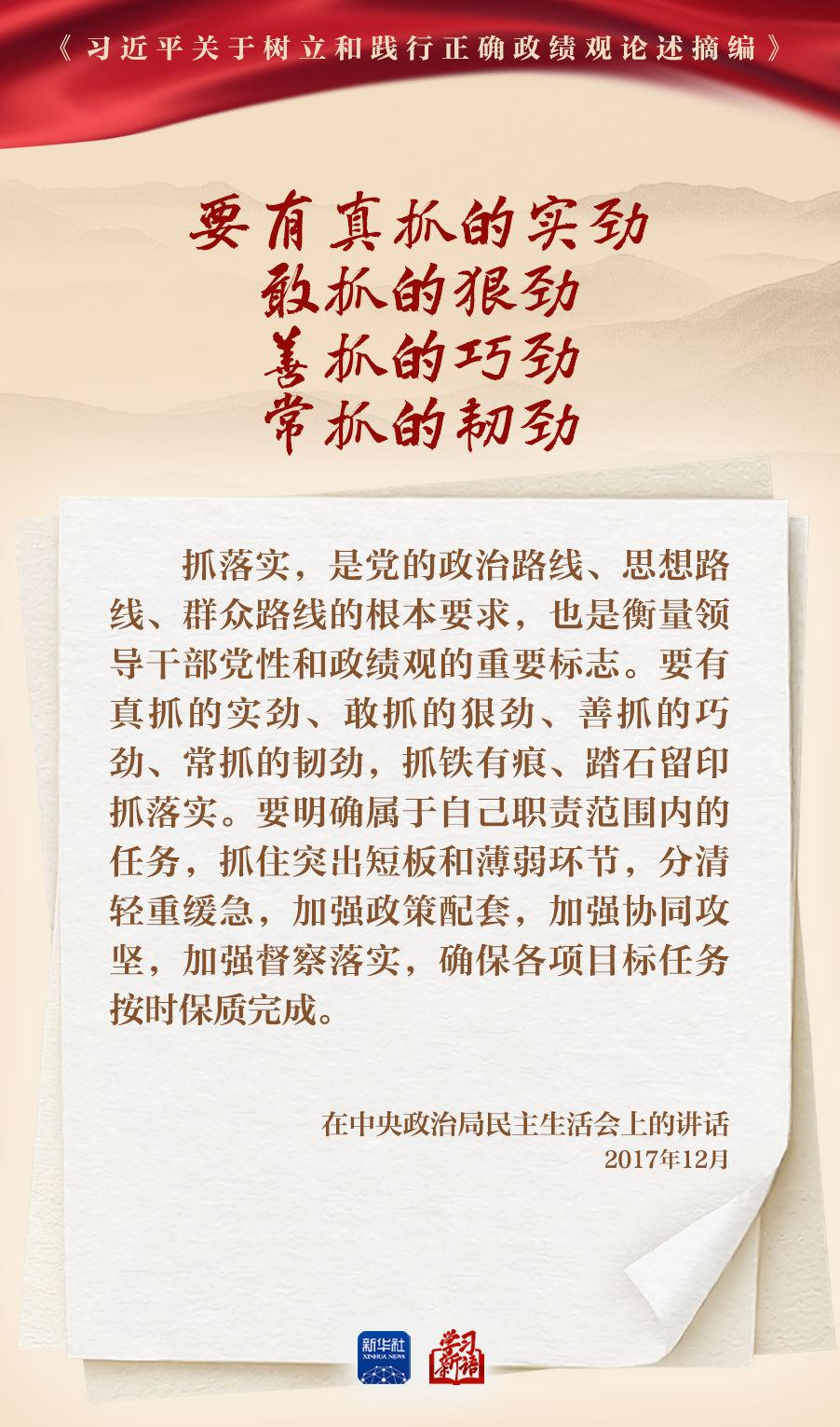 樹立和踐行正確政績觀學(xué)習(xí)教育正在全黨開展。真抓實(shí)干,是共產(chǎn)黨人的鮮明品格,也是成事之道。我們選取《習(xí)近平關(guān)于樹立和踐行正確政績觀論述摘編》一書中的相關(guān)重要論述,一起學(xué)習(xí)領(lǐng)會(huì)。