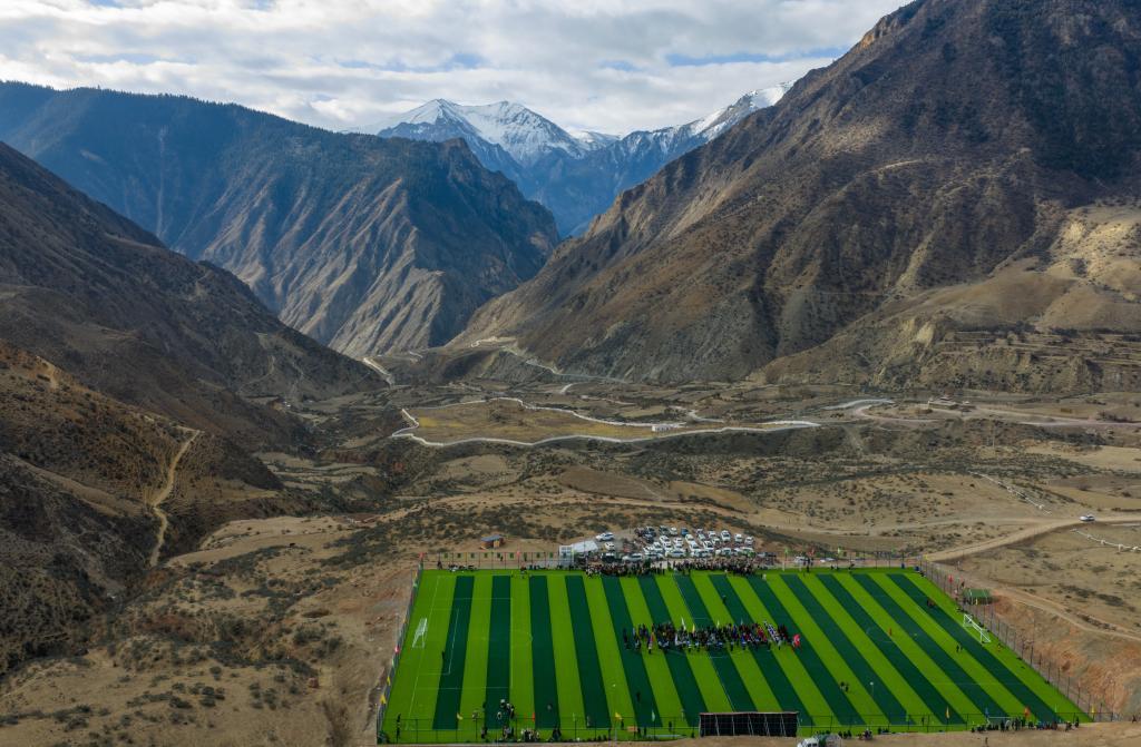 ??西藏昌都市洛隆縣馬利鎮(zhèn)足球場(無人機照片)。新華社記者 姜帆 攝