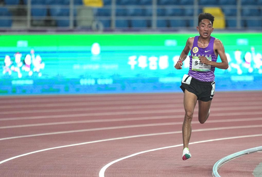 ??西藏隊選手多布杰在第十四屆全運會田徑男子10000米決賽中奪冠。新華社記者 彭子洋 攝