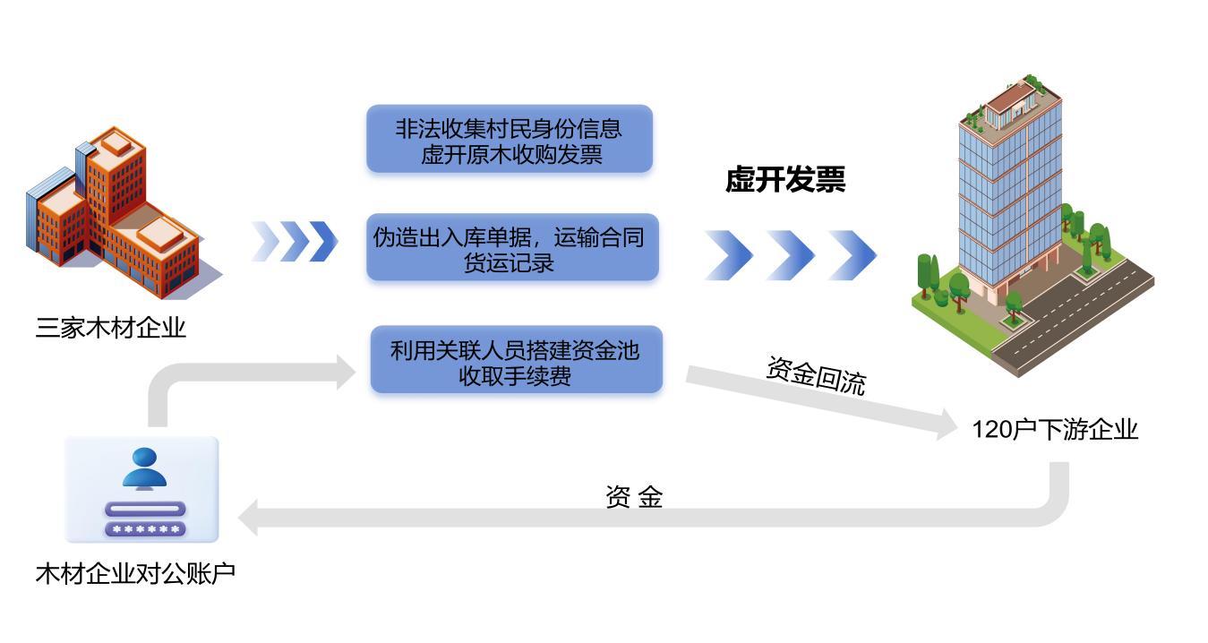 至此,在專案組的全方位徹查下,涼山布拖縣3戶企業(yè)實(shí)為“道具工廠”徹底現(xiàn)形:以劉楊、公大偉為首的犯罪團(tuán)伙,通過(guò)設(shè)立3戶木業(yè)公司,以用工為名,非法收集村民身份信息,為自己虛開(kāi)原木收購(gòu)發(fā)票;同時(shí)通過(guò)購(gòu)買二手設(shè)備、臨時(shí)雇傭人員等手段營(yíng)造生產(chǎn)假象,為他人虛開(kāi)板材類增值稅專用發(fā)票。