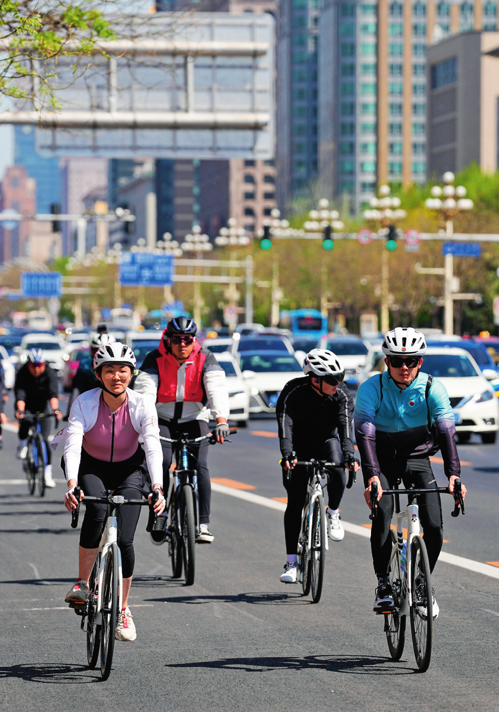 騎行愛好者在北京長安街上騎行(資料照片) 鞠煥宗攝/本刊