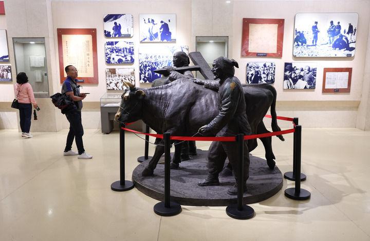 2025年10月8日,游客在河北平山縣西柏坡紀(jì)念館參觀。新華社發(fā)(梁子棟攝)