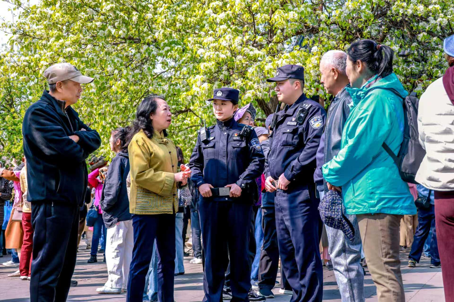 進入春季賞花期,北京市東城區(qū)各大公園景點繁花盛放,吸引大批游客前來打卡。面對持續(xù)高位運行的客流量,北京市公安局東城分局堅持“遠(yuǎn)端疏導(dǎo)、近端分流”,優(yōu)化游覽線路,適時采取分段引導(dǎo)、循環(huán)通行等措施,確保游覽秩序平穩(wěn)有序。