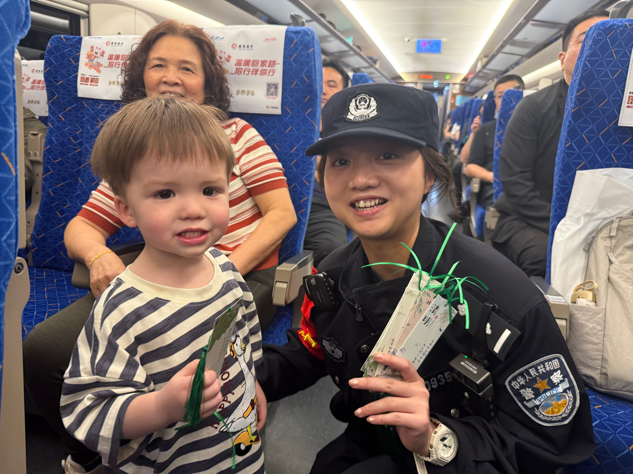 此外,女警們還將精心制作的祝福書簽送到旅客手中,書簽上印有節(jié)日安康寄語和簡潔安全提示,讓旅途之中的旅客倍感暖心?!谤i乘楓警”女子乘警組把安全保障與人文關(guān)懷融入旅途點(diǎn)滴,為假期高鐵出行筑牢安全屏障,也用真摯服務(wù)為奔波的旅客送去溫暖。