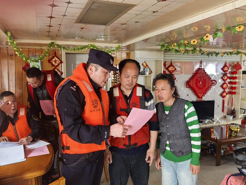 圖為水上公安局民警登船開展安全檢查、普及反詐知識(shí)。楊群 攝