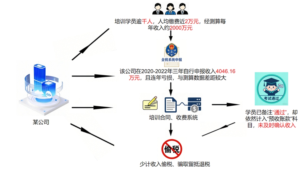 檢查人員通過公司報名收費系統(tǒng)看到,名單中明明大量學員已備注“通過”,卻依然計在“預收賬款”科目,未及時確認收入,同時,企業(yè)仍對因未確認收入形成的7.91萬元增值稅留抵稅額申請退稅,存在騙取留抵退稅問題。