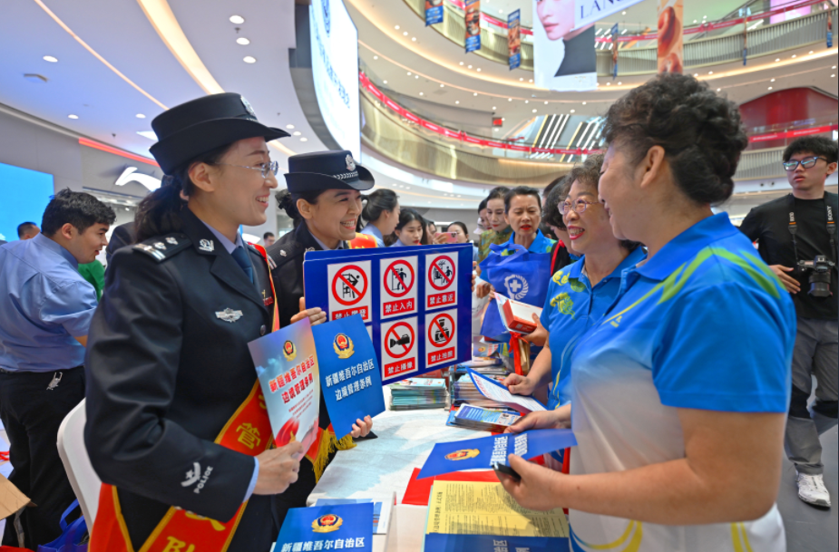 4月10日,新疆出入境邊防檢查總站昌吉邊境管理支隊(duì)組織民警來(lái)到昌吉市區(qū)人流量較大的商場(chǎng),通過(guò)發(fā)放宣傳手冊(cè)、現(xiàn)場(chǎng)講解、警民互動(dòng)等方式,“面對(duì)面”向群眾宣傳講解《中華人民共和國(guó)憲法》以及國(guó)家安全、邊境管理相關(guān)法律法規(guī),提升廣大群眾尊崇法律、踐行法治,愛(ài)邊、護(hù)邊、守邊意識(shí)。