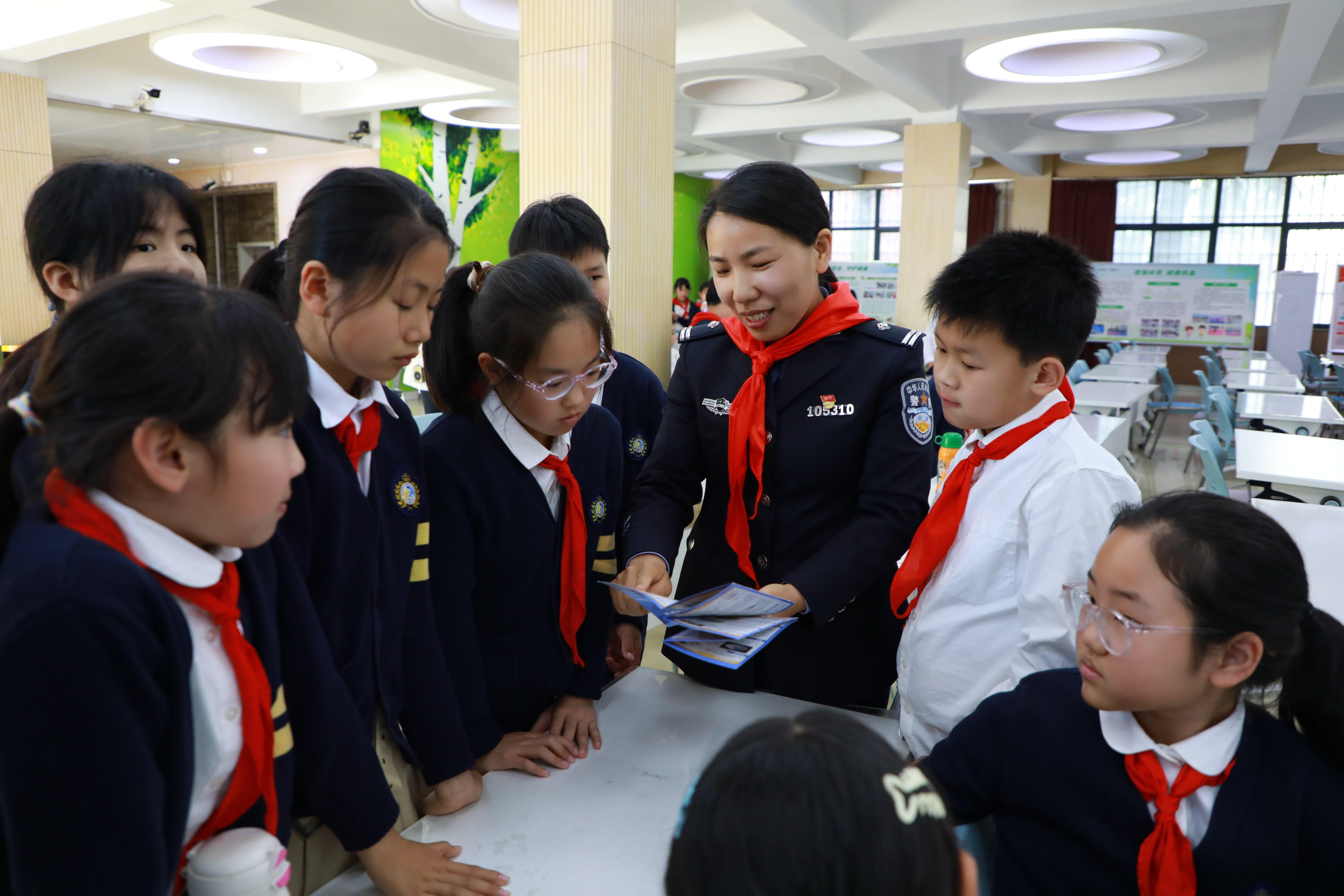圖為民警與學(xué)生們互動交流。