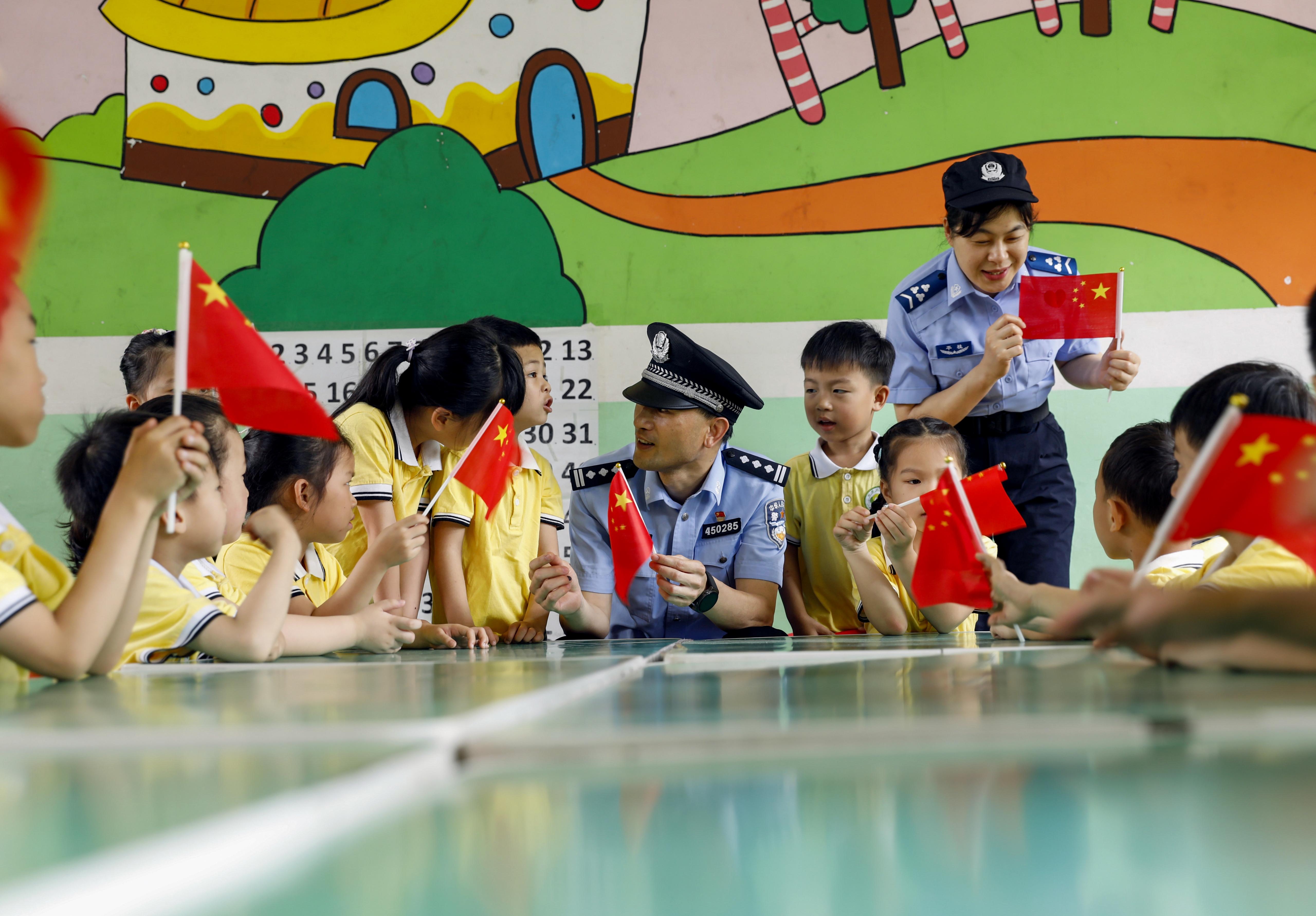 4月13日,廣西壯族自治區(qū)賀州市公安局平桂分局民輔警走進(jìn)轄區(qū)幼兒園開展國家安全宣傳教育活動(dòng),通過游戲互動(dòng)等趣味形式,將愛國與安全的種子播撒進(jìn)孩子們的心田。