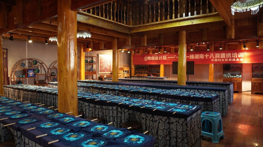 “十八洞片區(qū)苗繡鄉(xiāng)村振興示范基地”研學(xué)教室。新華社記者 戴斌 攝