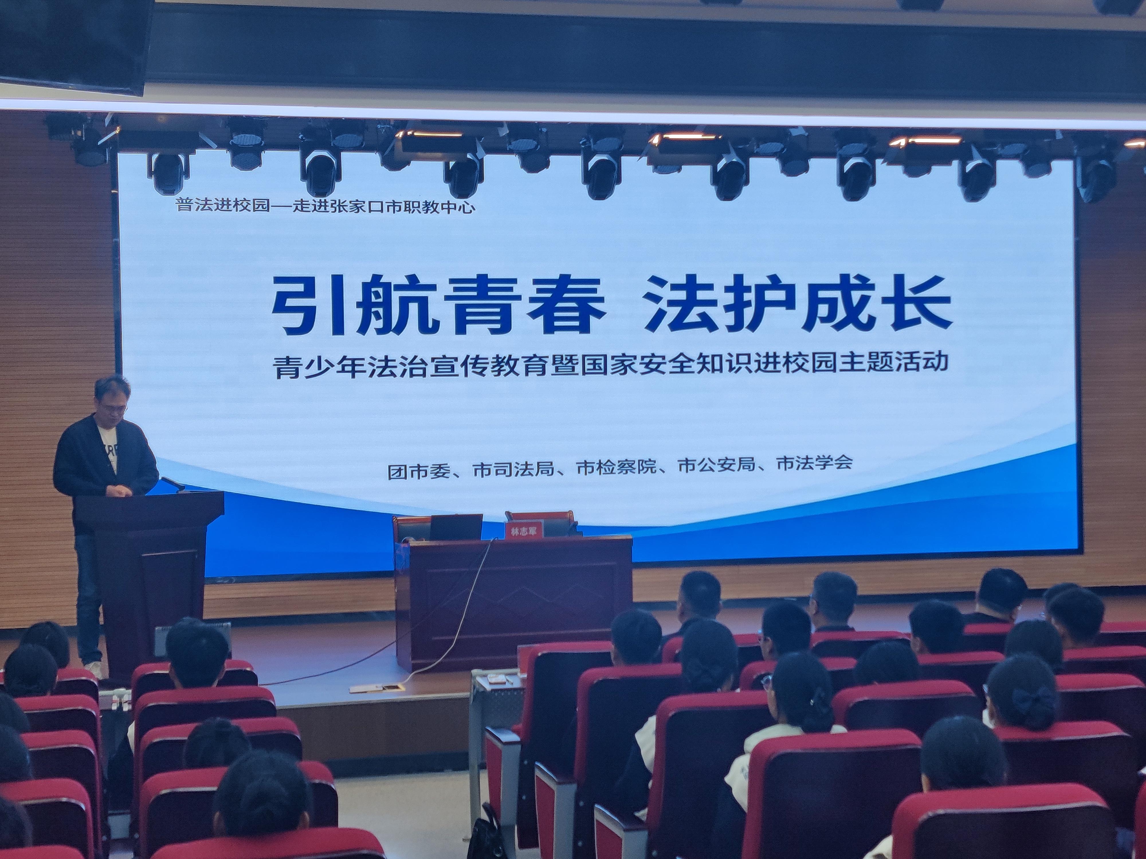 4月14日,多部門聯(lián)合走進張家口市職教中心,舉辦“引航青春 法護成長”青少年法治宣傳教育暨國家安全知識進校園活動。市檢察院第九檢察部主任林志軍結合青少年認知特點,通過真實案例剖析“校園間諜陷阱”“網(wǎng)絡信息保護”等風險點,引導青少年知敬畏、存戒懼、守底線。