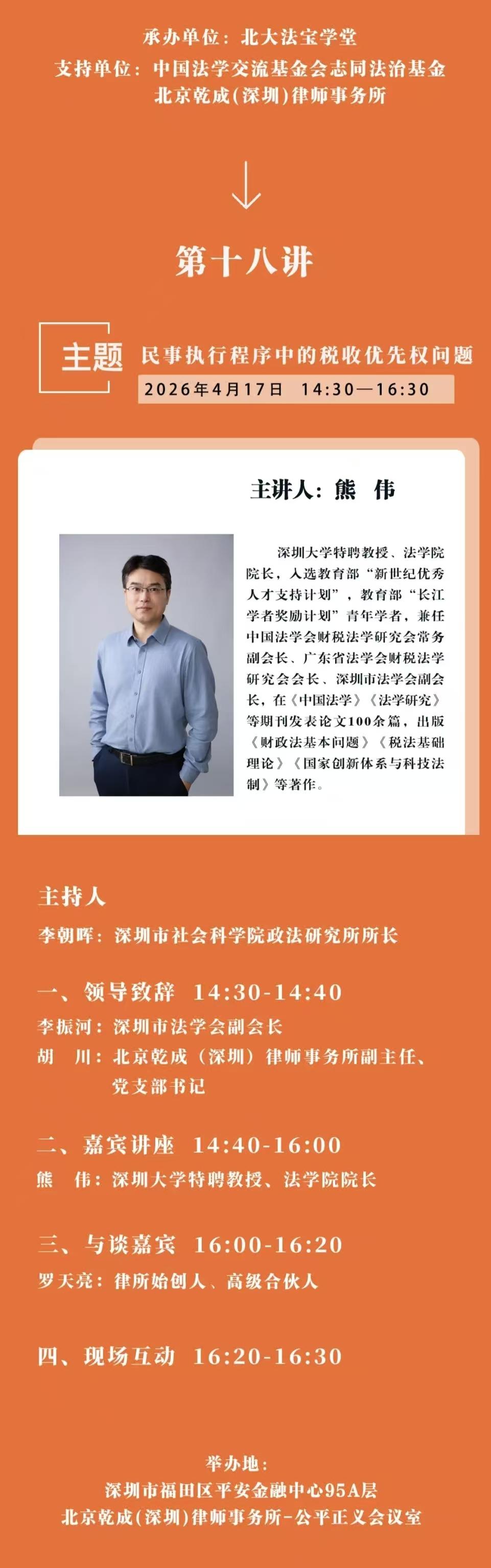 “全國青年法學(xué)家公開課”系列公益講座第十八講將于4月17日舉辦