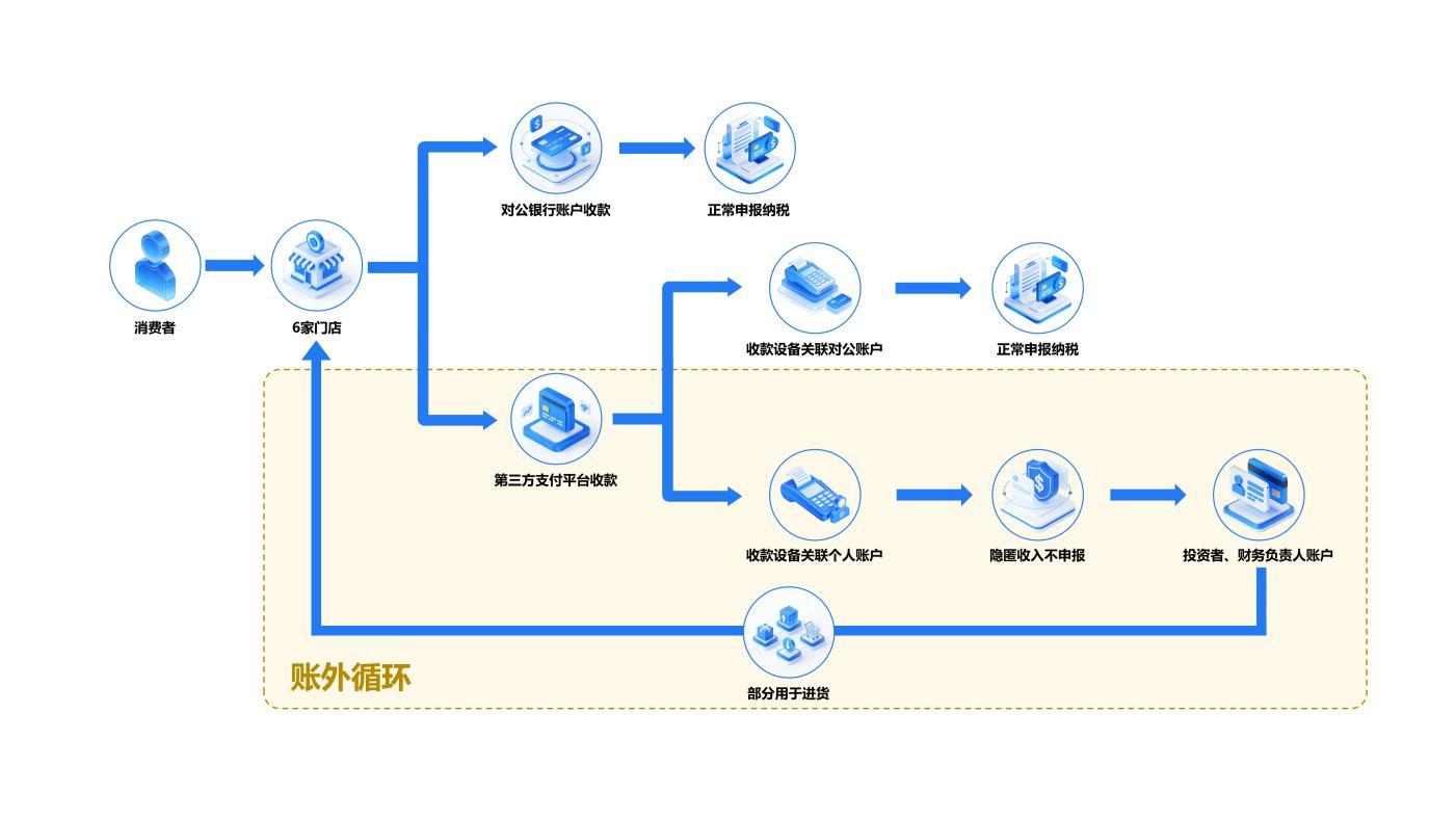 進(jìn)一步核實確認(rèn),該公司員工個人賬戶2024年從第三方支付平臺收取的款項中,除泰州地區(qū)6家門店銷售收入外,還包含其他地區(qū)營業(yè)資金收入,相關(guān)證據(jù)資料已傳遞至有管轄權(quán)的稅務(wù)機(jī)關(guān)另案處理。經(jīng)逐筆梳理第三方支付平臺交易流水,結(jié)合對公賬戶銀行流水和申報數(shù)據(jù)交叉印證,檢查人員最終鎖定應(yīng)稅收入,查實該公司隱匿銷售收入達(dá)3361.2萬元。