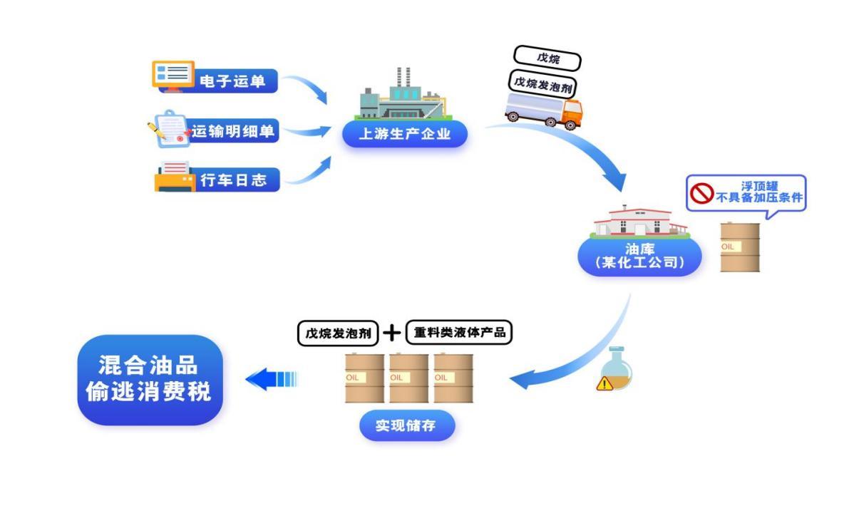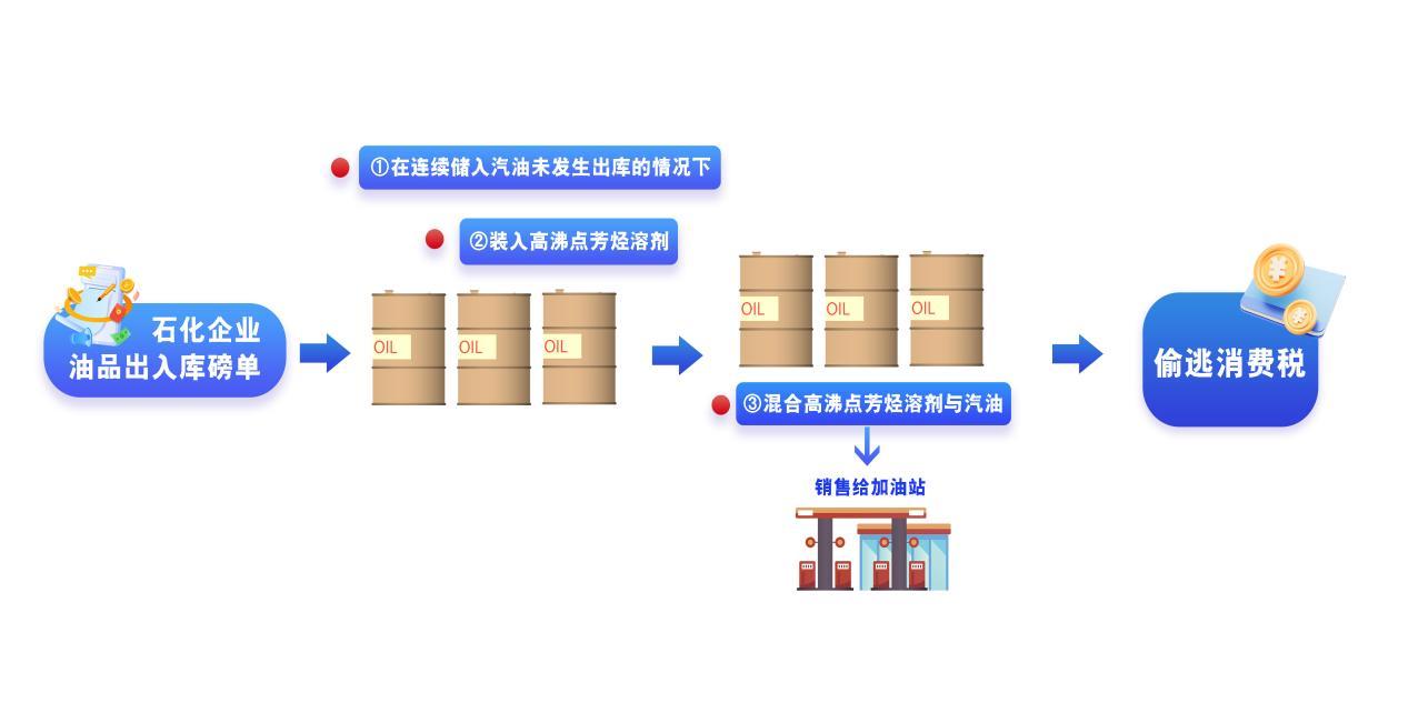至此,宏堅(jiān)石化的逃稅手法“一覽無(wú)余”:該企業(yè)作為經(jīng)銷企業(yè),從上游采購(gòu)敏感化工品,在無(wú)生產(chǎn)資質(zhì)的情況下,直接將這些原料注入儲(chǔ)罐進(jìn)行物理混合,產(chǎn)出所謂的“汽油”進(jìn)行銷售,規(guī)避其作為油品調(diào)和者應(yīng)承擔(dān)的消費(fèi)稅納稅義務(wù),達(dá)到偷逃稅款的目的。
