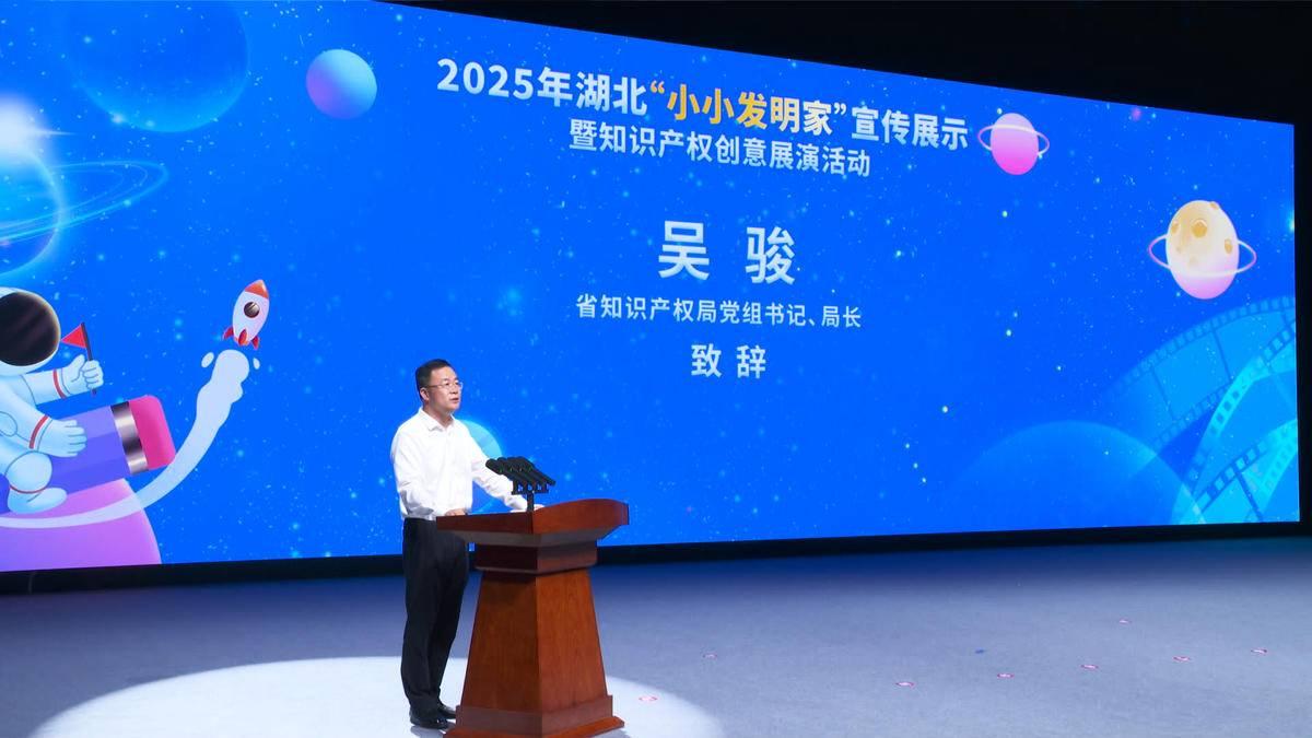 活動在武漢市光谷第二十一小學(xué)樂隊和機(jī)器人共同帶來的開場秀《閃耀明天》中拉開帷幕。湖北省知識產(chǎn)權(quán)局局長吳駿致辭表示,此次活動旨在為全省熱愛科學(xué)、勇于創(chuàng)新的青少年們搭建一個激發(fā)靈感、展示才華、交流互鑒的廣闊平臺,讓創(chuàng)新的種子在幼小的心靈中生根發(fā)芽,讓知識產(chǎn)權(quán)的理念在青春的土壤里茁壯成長。他親切寄語“小小發(fā)明家”,永葆好奇之心,敢于提問,善于思考,勤于動手,將天馬行空的想象變成創(chuàng)新創(chuàng)造的作品;初識知識產(chǎn)權(quán),了解它、尊重它、運(yùn)用它,學(xué)會保護(hù)創(chuàng)意,尊重發(fā)明創(chuàng)造;同時志存高遠(yuǎn),將今天的興趣發(fā)展成為明天的志向,努力成長為科技自立自強(qiáng)的棟梁之材。