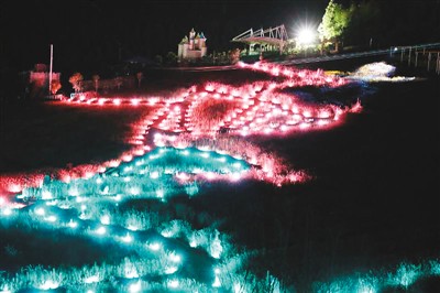 8月1日晚,僑鄉(xiāng)福建省閩清縣瓷天下·海絲谷景區(qū)被燈光秀點亮。以地圖上的福州為起點,燈帶順著海絲沿線國家次第亮起,一張“海絲地圖”隨風搖曳,吸引了大量游客。