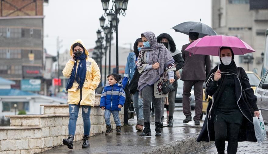 12月6日,市民佩戴口罩在伊朗通卡邦街頭出行。