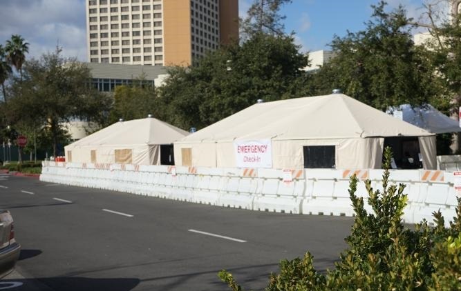 這是12月17日在美國加利福尼亞州奧蘭治縣歐文拍攝的戶外移動醫(yī)院。