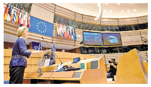 “2021年將是科技巨頭的監(jiān)管年。它們現(xiàn)在已經(jīng)是一個成熟的行業(yè)了,而不再只是閃閃發(fā)光的年輕創(chuàng)業(yè)公司?!泵绹鴳?zhàn)略與國際問題研究中心高級副總裁、技術(shù)政策項(xiàng)目主任詹姆斯·安德魯·劉易斯評論說:“我們過去常說,銀行‘大而不能倒’,但銀行其實(shí)受到高度監(jiān)管?,F(xiàn)在,對這些科技巨頭的監(jiān)管也應(yīng)朝著這個方向發(fā)展?!?br/> 歐盟今年2月啟動《數(shù)字服務(wù)法案》和《數(shù)字市場法案》立法工作。歐盟領(lǐng)導(dǎo)人就此進(jìn)行了數(shù)輪磋商。12月15日,歐盟委員會公布了《數(shù)字服務(wù)法案》及《數(shù)字市場法案》草案。圖①為歐盟委員會領(lǐng)導(dǎo)人及法、德等歐洲主要國家領(lǐng)導(dǎo)人在布魯塞爾進(jìn)行磋商。圖②為歐盟委員會主席馮德萊恩。