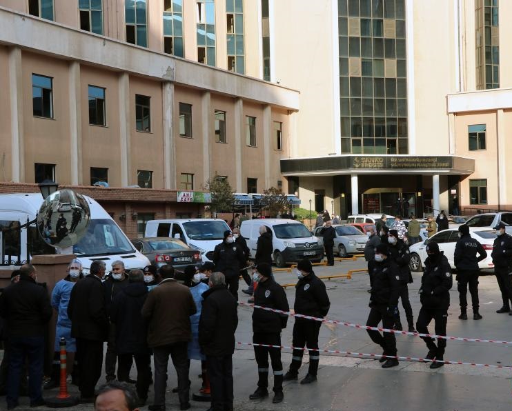 12月19日,在土耳其東南部加濟安泰普省,警察在發(fā)生火災的私立醫(yī)院外警戒。