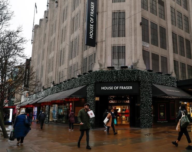 12月18日,人們從英國倫敦的弗雷澤百貨公司前走過。