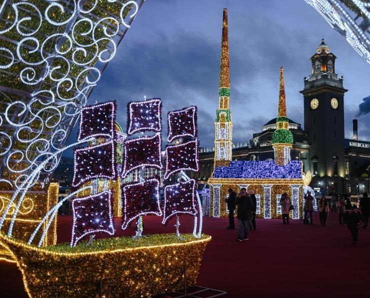 新年臨近,俄羅斯首都莫斯科點(diǎn)亮各式彩燈,為城市營造節(jié)日的氛圍。