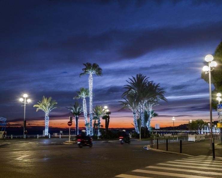 這是12月24日在法國尼斯拍攝的圣誕燈飾。新華社發(fā)(塞爾日·阿烏齊攝)