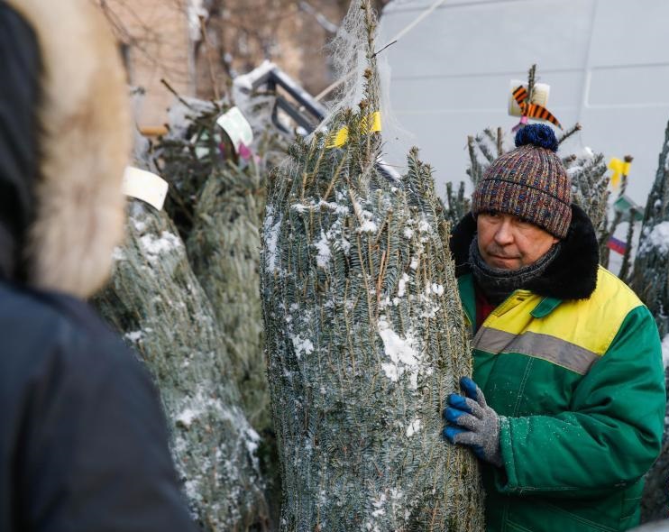 12月27日,商販在俄羅斯首都莫斯科的節(jié)日市場(chǎng)售賣新年樅樹(shù)。
