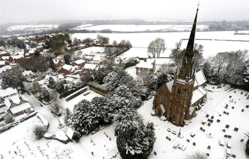 英國斯塔福德郡迎來降雪 銀裝素裹白茫茫一片--國際--人民網(wǎng)