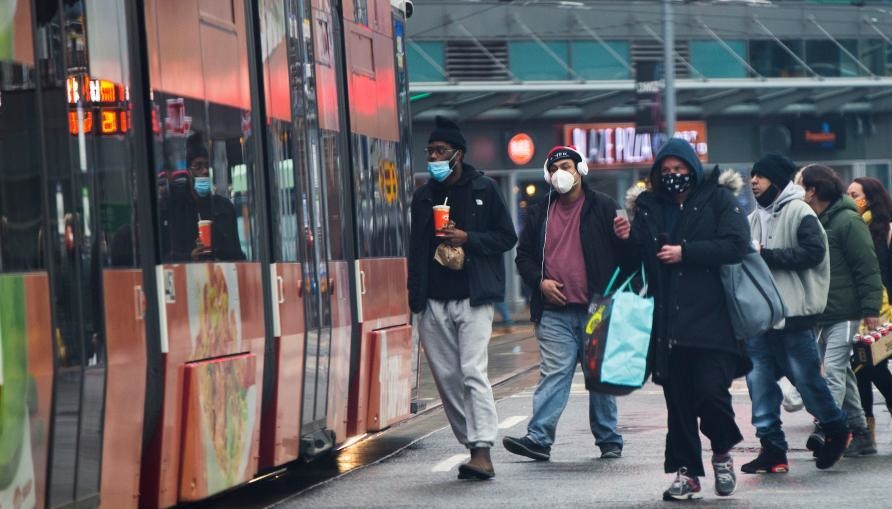 1月3日,在加拿大多倫多,戴口罩的乘客準備上公交車。新華社發(fā)(鄒崢 攝)