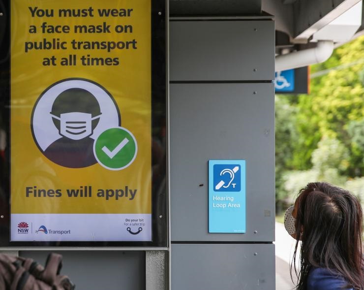 1月4日,在澳大利亞悉尼一座火車站,市民戴口罩觀看乘車防疫規(guī)定。新華社記者 白雪飛 攝