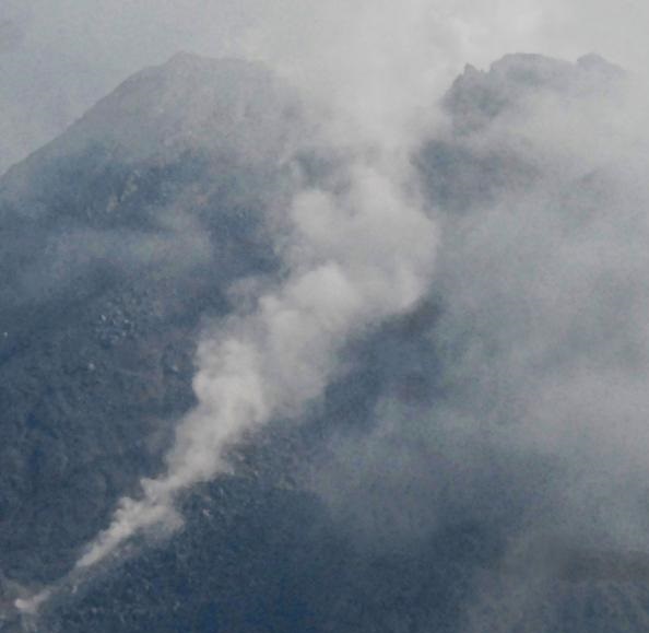 這是1月7日在印度尼西亞日惹拍攝的冒出白煙的默拉皮火山。新華社發(fā)(努格羅霍攝)