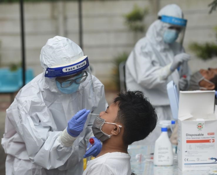 1月7日,醫(yī)務(wù)人員在印度尼西亞雅加達(dá)進行新冠病毒檢測取樣。新華社發(fā)(祖卡南攝)