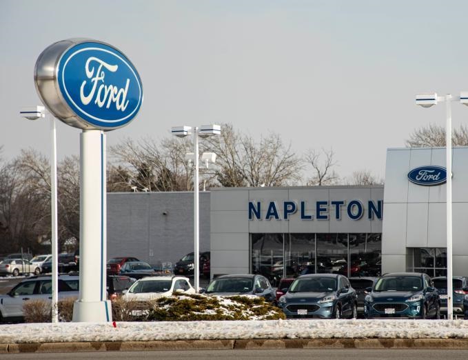 這是1月6日在美國伊利諾伊州利伯蒂維爾拍攝的福特汽車專賣店。