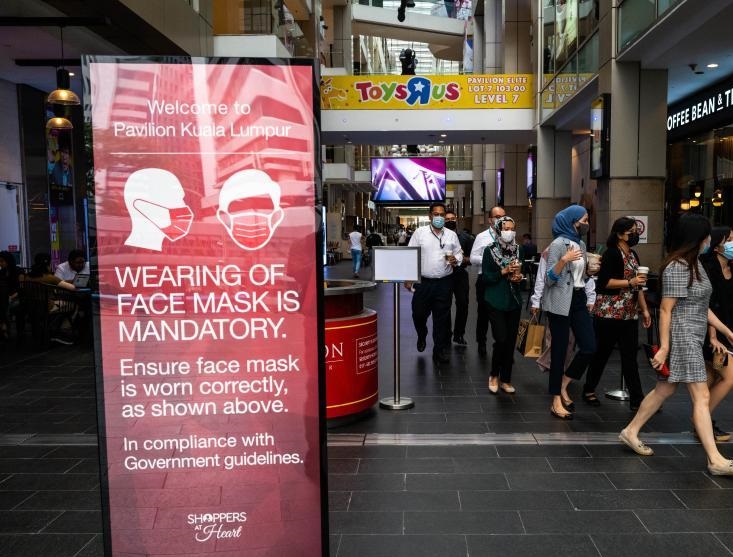 1月11日,在馬來西亞吉隆坡,人們戴著口罩從店鋪旁走過。